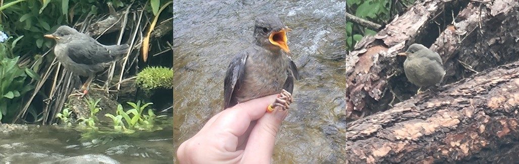Mate switching isn’t unheard of in dippers, but here’s the twist: when we started checking dipper nests for the 2025 breeding season – guess who was back together?! That’s right, 40801 and 40802 reunited for a first nesting attempt in early April. Sadly, that nest failed shortly after hatching, but their bond must be stronger than ever because their second attempt just fledged three nestling dippers last weekend!